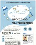 公開日:2026年01月17日お知らせNPOのための個人情報保護講座(令和7年度千葉県市民活動団体マネジメント事業(団体運営の基礎)NPOのための個人情報保護講座 2/12(木)16:00~18:00オンライン開催